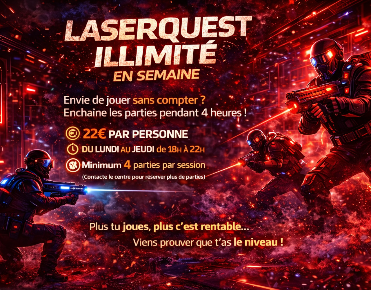 8 parties de LaserQuest au minimum seront lancées durant les 4h30.